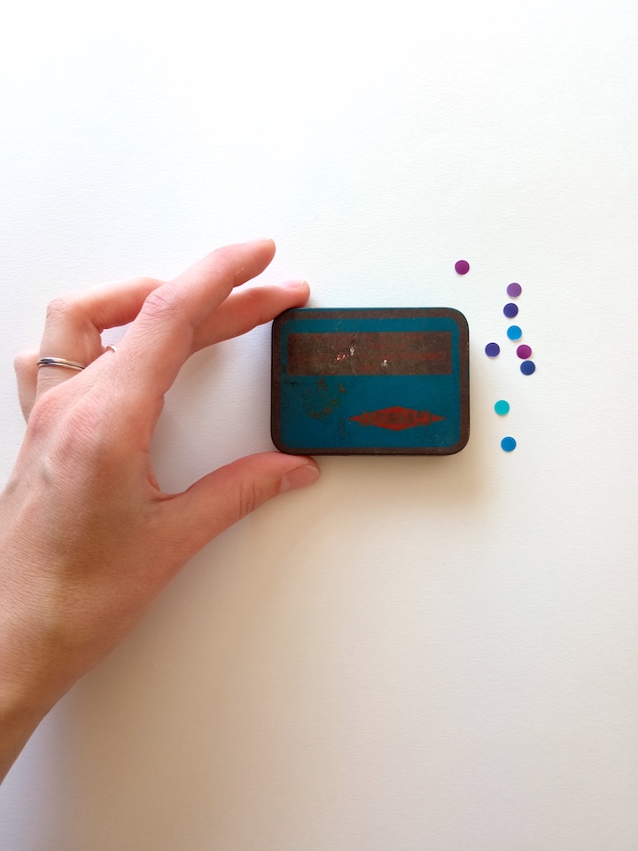 Dans une petite boite ancienne se cache un insecte de papier. Il est découpé et façonné à la main. La boite mesure 5,5 x 7,5 cm. Elle comporte un système de fixation murale. Le couvercle est autonome.