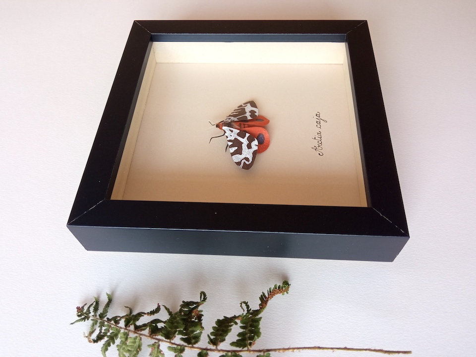 Ce papillon est une écaille martre ou Hérissonne. La composition de papier est découpée et façonnée à la main.
