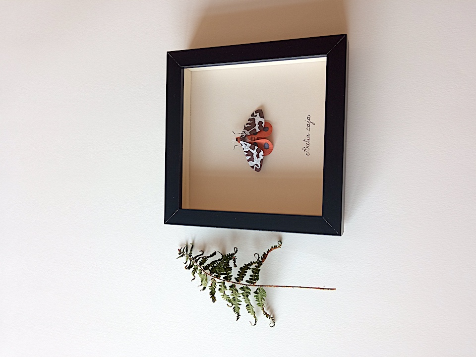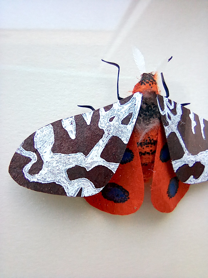Ce papillon est une écaille martre ou Hérissonne. La composition de papier est découpée et façonnée à la main.